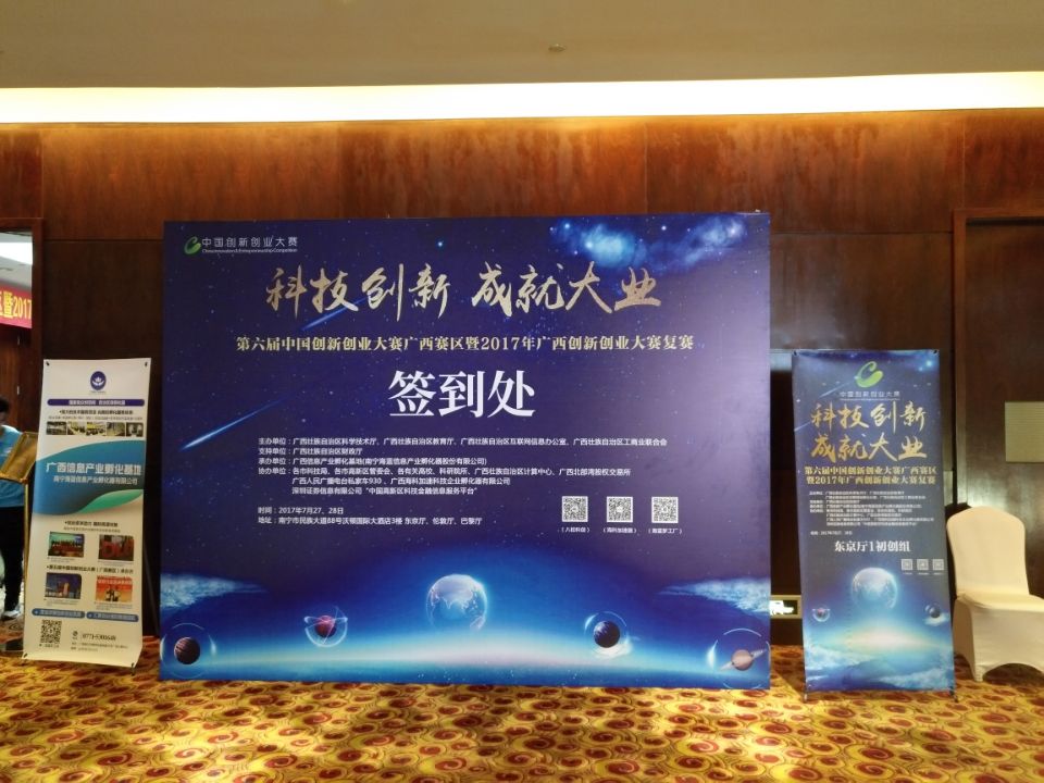 2017年7月28日,廣西金邦泰科技有限公司龐超總經(jīng)理不辭勞苦,親自帶領(lǐng)團(tuán)隊(duì)抵達(dá)南寧沃頓國(guó)際大酒店,參加第六屆中國(guó)創(chuàng)新創(chuàng)業(yè)大賽廣西賽區(qū)復(fù)賽,取得不俗的成績(jī)!